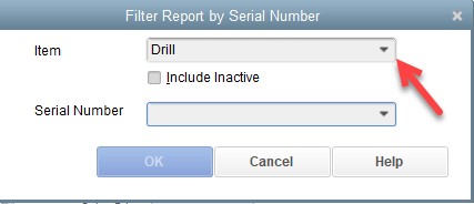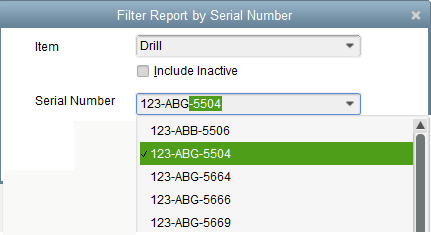 A new window will appear. The Filter Report by Serial Number pop-up will allow you to select an item.