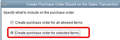 When creating a Sales Order, select “Create purchase order for selected items.”