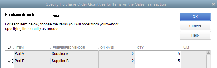 QuickBooks allows you to create a Purchase Order from an existing sales order.