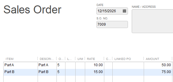 A new feature in QuickBooks now shows the Purchase Order number on the Sales Order and will display a hyperlink.