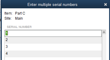 A new inventory adjustment feature allows you to both add and remove serial numbers. This can be useful when corrections need to be made. The pop-up window shown above is available here also to enter multiple numbers.
