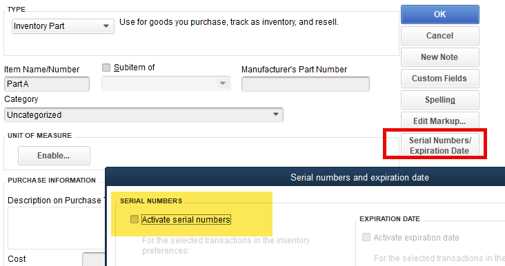 QuickBooks Enterprise has an advanced inventory feature that allows you to track products by serial or lot numbers. This feature is activated in advanced inventory preference settings. You can select either serial or lot numbers, but not both.