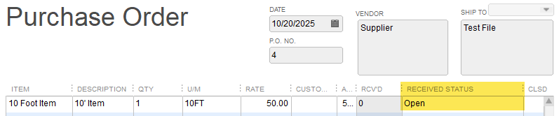 Once you create a purchase order, it will appear, along with other open purchase orders, on the Purchase Order tab.